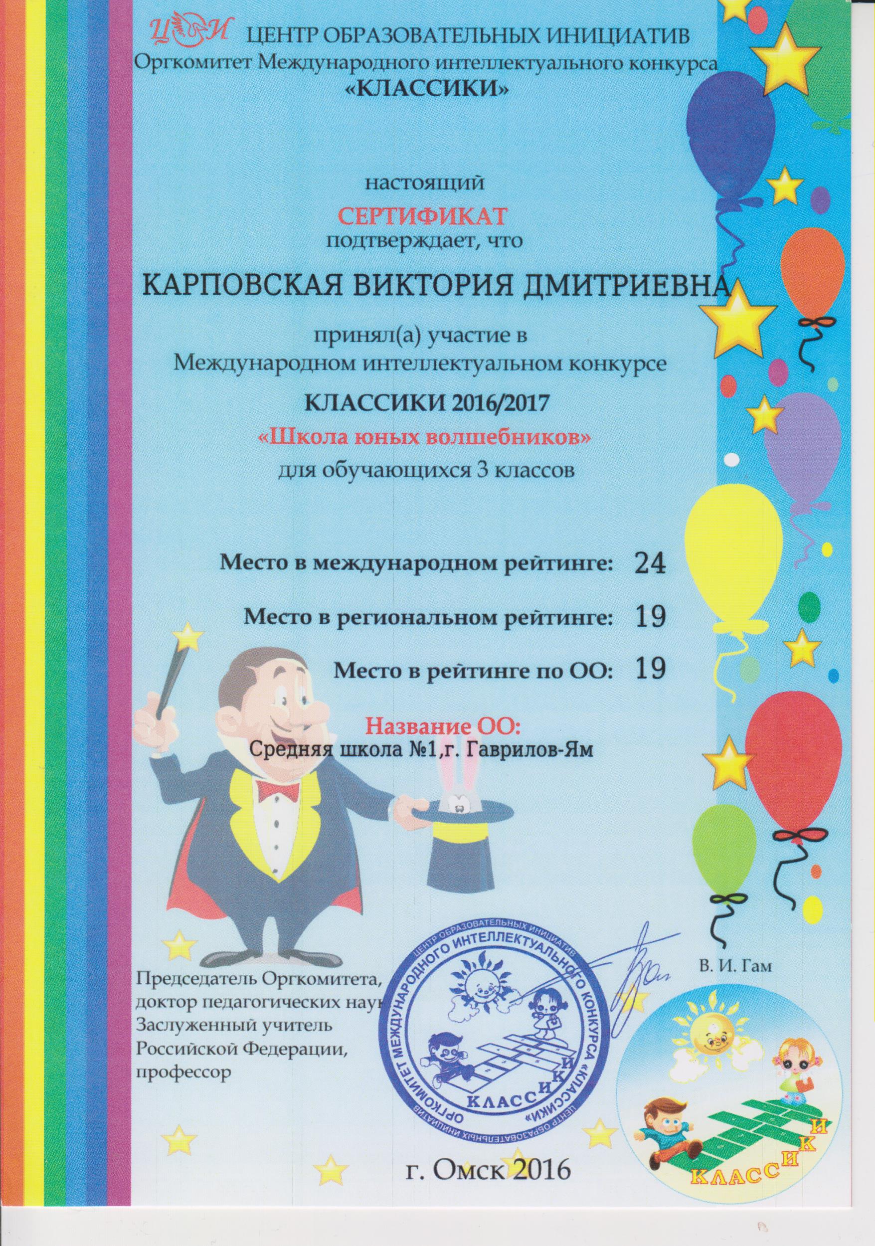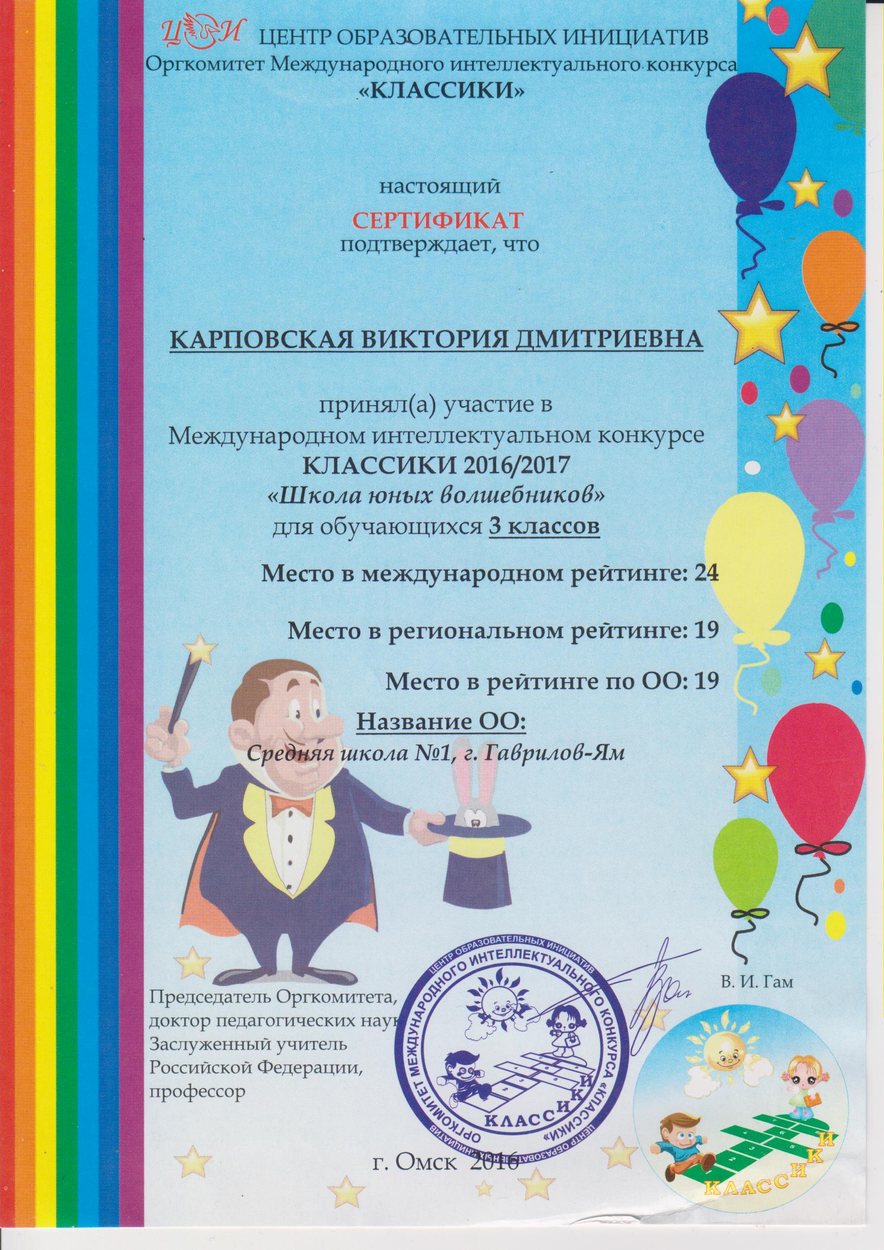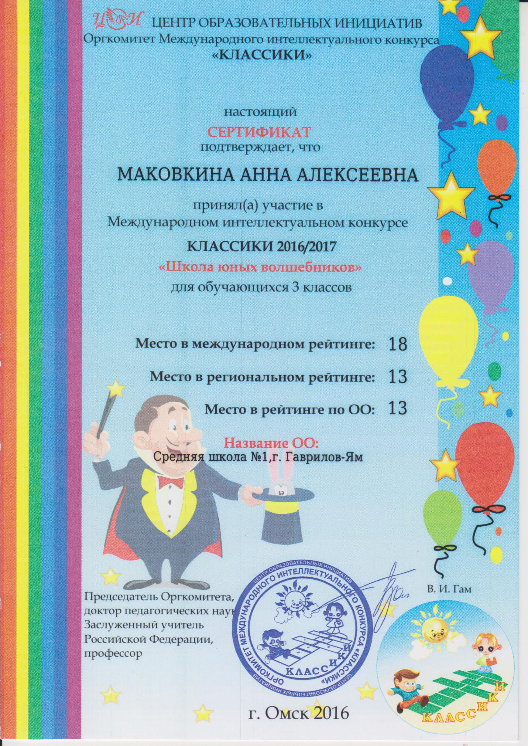 МОУ "Средняя школа №1" г. Гаврилов-Ям